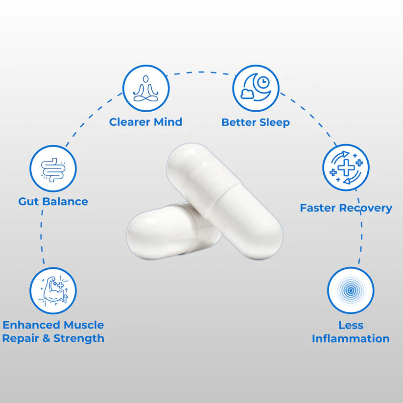 Helps support healing, inflammation control, gut lining repair, and performance recovery. Promotes mental clarity and neurological resilience.