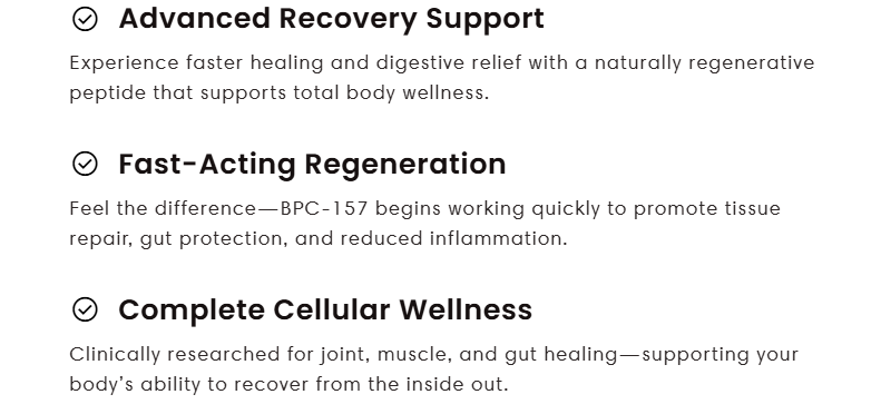 Say goodbye to slow healing, inflammation, and discomfort. This peptide supplement is powerful, natural, and regenerative. With every dose, it supports cellular repair, enhances gut lining, reduces pain, and boosts recovery—helping you feel stronger, faster, and revitalized every day.